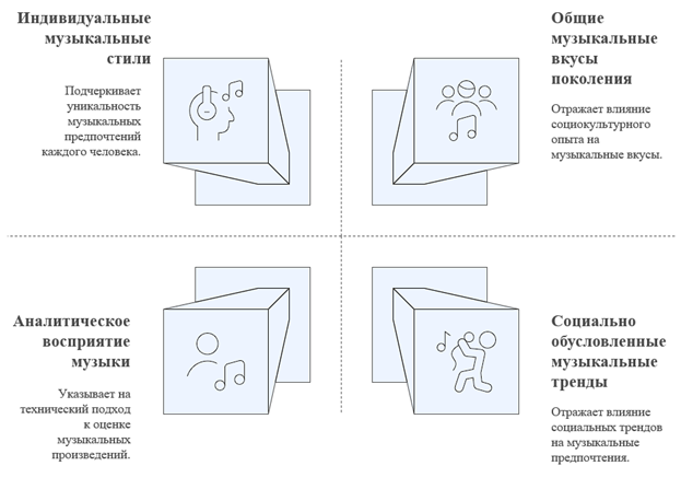 Выявленные особенности обусловлены комплексом факторов, включающим социокультурный опыт, психологические параметры возрастных групп, специфику восприятия звуковых характеристик музыки. Понимание данных закономерностей имеет определяющее значение для разработки эффективных стратегий продвижения музыкального контента в современной медиасреде, ориентированных на потребности и предпочтения различных сегментов аудитории.