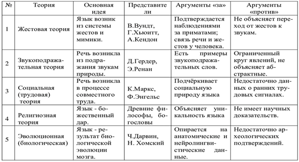 Сравнительный анализ теории происхождения языка