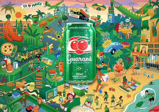 В 2021 году компания «Guaraná Antarctica» отметила 100-летие, представив лучшие стороны бразильской культуры [6]. Целью кампании – было передать «бразильское настроение» и его культурную значимость. В результате была создана серия иллюстраций для использования в социальных сетях в виде стикеров и GIF-файлов, лимитированных банок с напитками и плакатов. Визуальные образы, графическое и цветовое решение позволяют безошибочно считать заложенные смыслы и культурные коды страны.