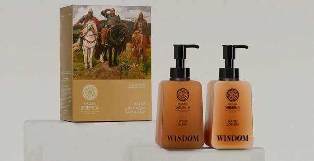 Российские бренды, с учетом тренда на кириллизацию и обращение к культурным смыслам страны, все чаще обращаются и переосмысливают традиционные визуальные смыслы и символы. Например, бренд Natura Siberica в 2024 году к открытию выставки «Васнецовы. Связь поколений. Из XIX в XXI век» (Новая Третьяковка на Крымском Валу) представили лимитированную коллекцию с изображениями картин художника [8]. Составы продуктов в представленной серии – это производные диких растений и ягод – напрямую ассоциируются с народными сказками.
