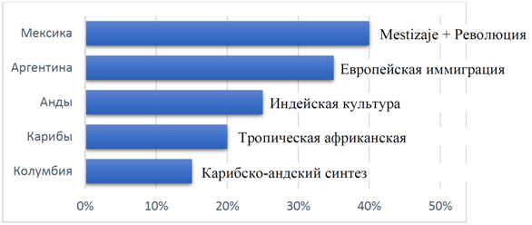 Соотношение культурно-лингвистических подтипов в составе латиноамериканской части корпуса представлено на Рис. 1.