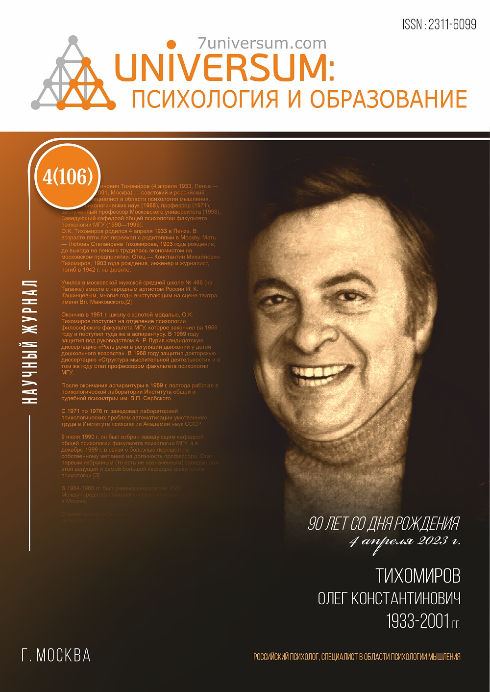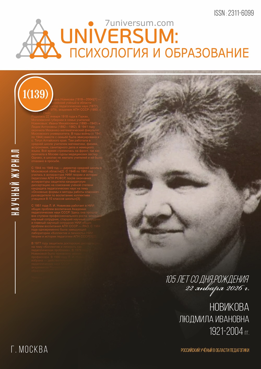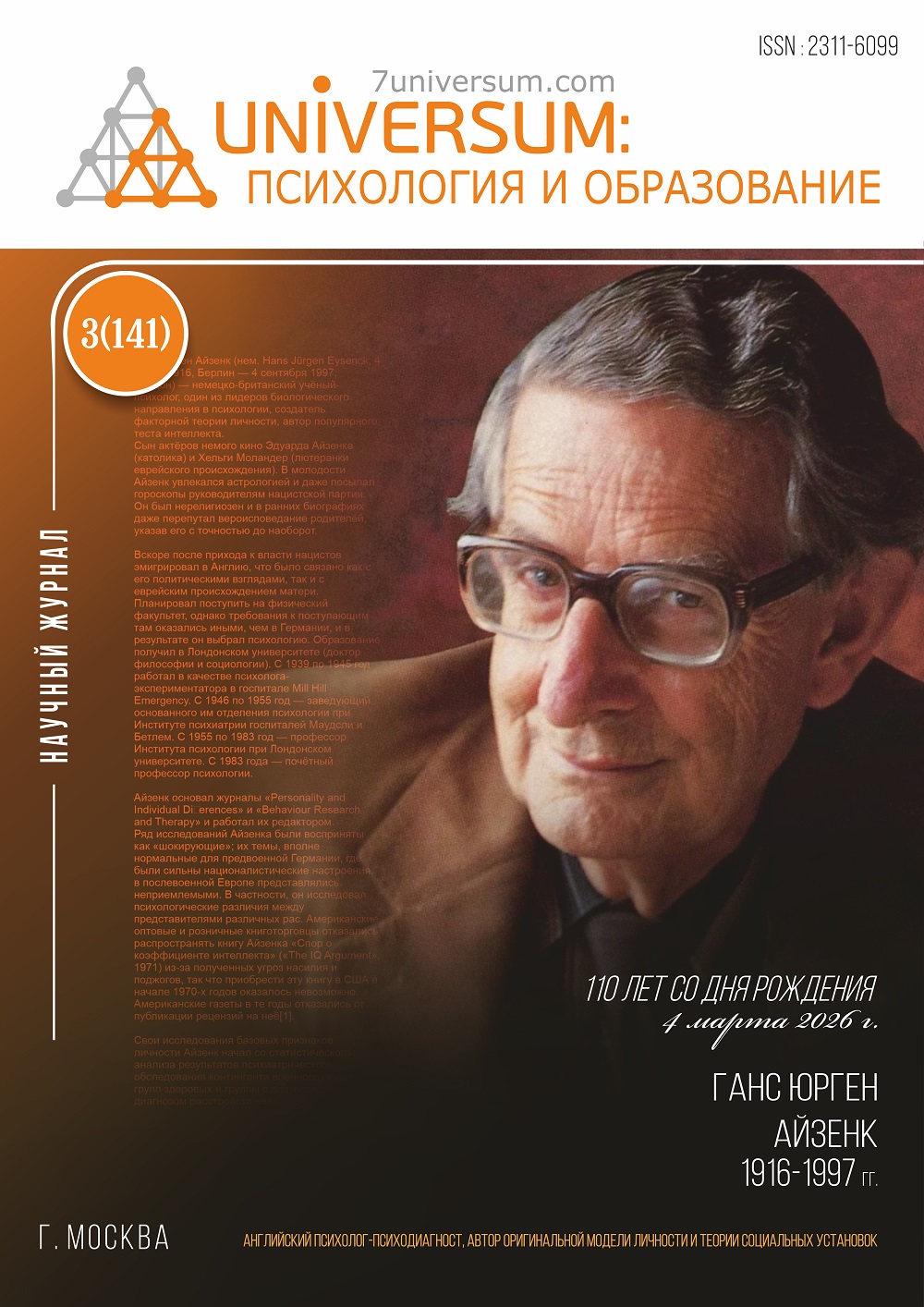 Научный журнал «Universum: психология и образование»