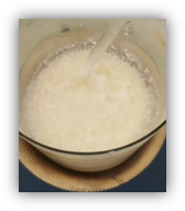 Для повышения адгезивных свойств и нейтрализации кислой среды полученный казеин необходимо разбавить раствором гидрокарбоната натрия, приготовленным из 1 г пищевой соды и 50 мл воды. Смесь нагреть до 60°C до получения однородной вязкой массы белого цвета. (Рис.4)