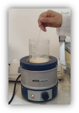 Реактивы и оборудование: 1% молоко; 9 % раствор уксусной кислоты; 1 г. гидрокарбоната натрия; вода; химический стакан на 250 мл; мерный цилиндр на 250 мл; стеклянные палочки; фильтры; универсальный индикатор; колбонагреватель.