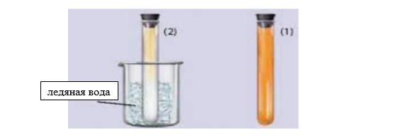 Вводный эксперимент: Учитель готовит 2 пробирки, содержащие газ NO2 одинакового коричневого цвета, и стеклянный стаканчик с ледяной водой.