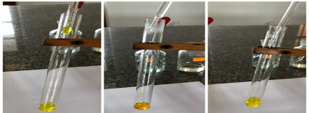 Обладая знаниями о влиянии концентрации на химическое равновесие, обучающиеся могут легко предсказать, что при использовании пипетки для капания разбавленного раствора серной кислоты в пробирку цвет раствора в пробирке будет постепенно меняться с желтого на оранжевый. Затем при дальнейшем использовании пипетки для капания раствора гидроксида калия в пробирку цвет раствора в пробирке будет постепенно меняться с оранжевого на желтый.