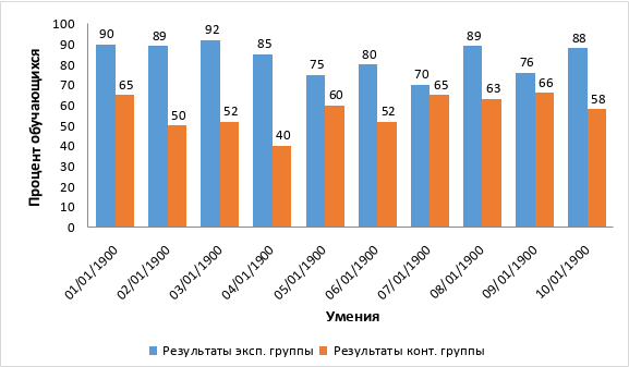 Результаты итогового оценочного теста экспериментальной группы (применившей исследуемый метод) по сравнению с контрольной группой показаны в таблице 1 и на рисунке 5.