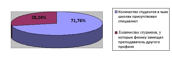 Диаграмма 1. «Соотношение количества студентов – получивших образование у профильного педагога по физике и замещающего его непрофильным специалистом»