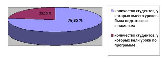76.85 % из 216 студентов ГБОУ КК «Славянский электротехнологический техникум» не имело возможности получать полноценный материал на уроках из-за подготовки к экзаменам.