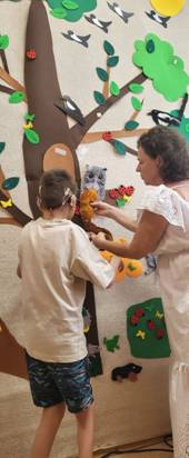 Несмотря на диагнозы и разные степени нарушений, дети с большой заинтересованностью и эмоциональным восхищением приняли это панно в свою жизнь. Каждый ребенок ощущает радость от мягкой лапки белочки, пушистой головы совы, ярких и мягких божьих коровок, тонко сплетенной паутинки с паучком, огромной пушистой лисички, сделанных теплыми, заботливыми руками мастера. Также мы снимаем нежелательное поведение у детей, подводя их к панно, где они могут отработать различные эмоциональные сказки, подавить агрессию, улучшить настроение себе и окружающим.