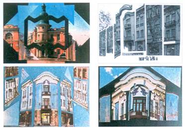 На рисунке 2 представлены композиции, составленные из фрагментов фотографий с изображением памятников эпохи модерна в Иркутске: здание Русско-азиатского банка и торгового дома фирмы «Треугольник».