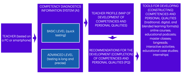 Figure 3. Scheme of implementation of the teaching staff testing system for the development of competencies