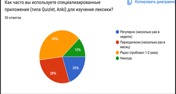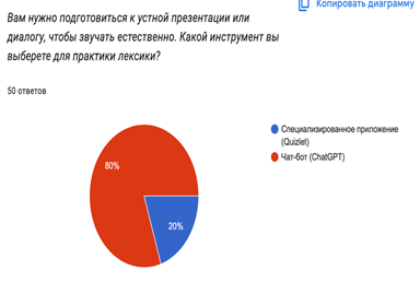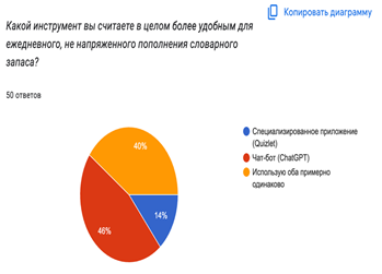 СРАВНИТЕЛЬНЫЙ АНАЛИЗ ПРЕДПОЧТЕНИЙ ПОЛЬЗОВАТЕЛЕЙ: ЧАТ-БОТЫ ПРОТИВ СПЕЦИАЛИЗИРОВАННЫХ ПРИЛОЖЕНИЙ ДЛЯ ПОПОЛНЕНИЯ СЛОВАРНОГО ЗАПАСА
