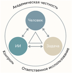 Переходя к нормативно-педагогическому уровню, важно подчеркнуть появление понятия «ответственного использования ИИ», закреплённого в рекомендациях UNESCO (2021) и OECD (2023) [3;17]. Оно предполагает три принципа: прозрачность происхождения данных и ответов; верифицируемость рассуждений; недопустимость подмены авторства и интеллектуальной автономии обучающегося. В контексте образования это означает необходимость формулировать задания с обязательным требованием реконструкции решения, маркировать использование ИИ в работах и развивать навыки критического осмысления цифровой подсказки.