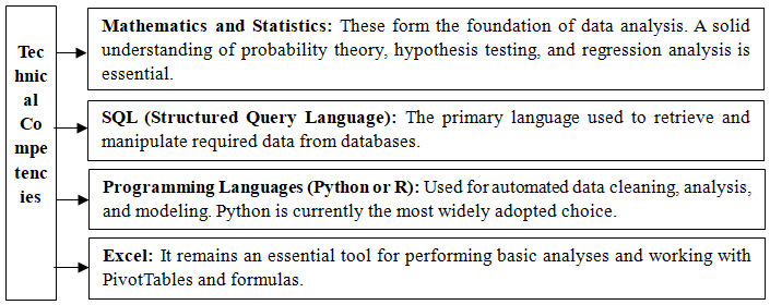 The development of technical competencies in data analysis among students has become one of the top priorities of modern higher education. This process goes beyond merely learning software tools; it aims to integrate critical thinking with an algorithmic approach. At the initial stage, students need to master the mathematical and statistical foundations of data handling, as any technical tool (such as Python, R, or SQL) can produce effective results only when supported by a solid theoretical knowledge base. Core competencies in data analysis-namely data collection, cleaning, and processing-enable students to systematize raw information, filter out errors, and prepare data for meaningful analysis.