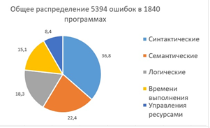 На основе анализа 1840 учебных программ выявлено 5394 ошибки, систематизированные в пять категорий (Рис 1.):