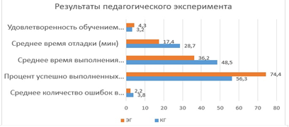 Статистически значимые различия между КГ и ЭГ (p < 0,001) по всем параметрам подтверждают эффективность разработанных стратегий. Особенно важным является формирование навыков самостоятельной отладки программ, что отмечается в практике преподавания программирования [1].