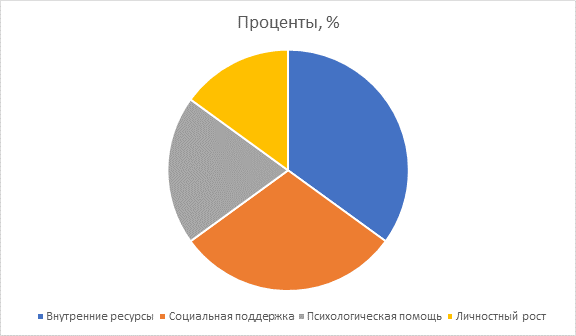 Результаты анализа также согласуются с выводами исследований, согласно которым психологическая устойчивость личности не является исключительно врождённой характеристикой, а развивается в течение жизни под влиянием социального опыта, жизненных обстоятельств и особенностей индивидуального развития. Наличие внутренних ресурсов позволяет личности более эффективно справляться со стрессовыми событиями и снижать негативное влияние жизненных кризисов.