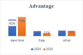 We intended to reveal the main reasons. According to the survey, 61%-70% of students used AI translation tools to save time, so they are important in this busy digital era. Students report relying on AI translation for quick drafting of translated notes, and instant clarification of unfamiliar vocabulary. The time savings appear to support multitasking and enabling students to process more material in less time. Therefore, it was an essential reason. 18%-11% of students said that AI translation was easy to translate and use. This percentage dropped by 7%, indicating that students are refusing to take the simple route. 21%-19% of students noted that they had other reasons such as interesting, suggesting other versions and helping to translate.