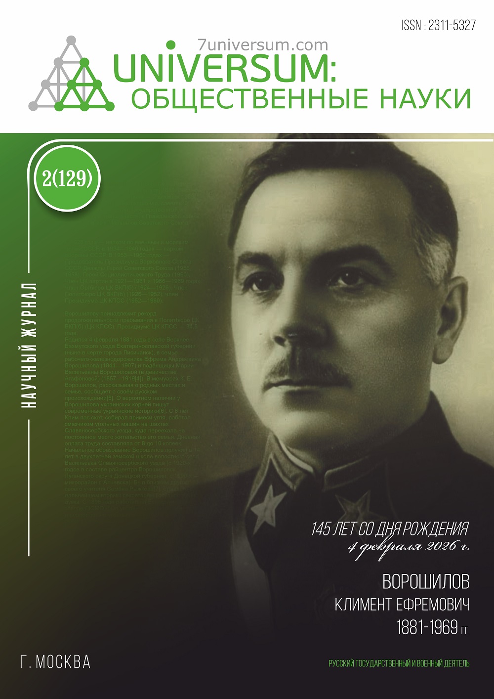 Научный журнал «Universum: общественные науки»
