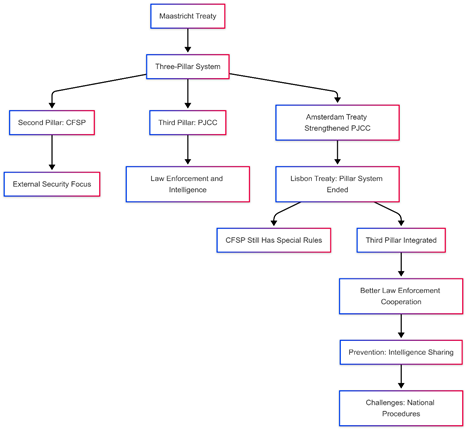 These reforms strengthened the EU’s legal and political tools in combating terrorism, especially in areas like radicalisation prevention, intelligence sharing, and law enforcement cooperation. Nonetheless, the continued use of separate rules for the CFSP can result in fragmented procedures and limited cooperation, which must be considered when evaluating the success of the EU's preventive measures against terrorism.
