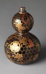 Figure 2. Maki-e sake bottle with Tokugawa clan's mon (emblem), Edo period, 18th century (Source: The Metropolitian Museum)