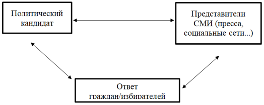 Рисунок 1. Схема, отображающая диалектическое взаимодействие между кандидатами и избирателями через социальные сети