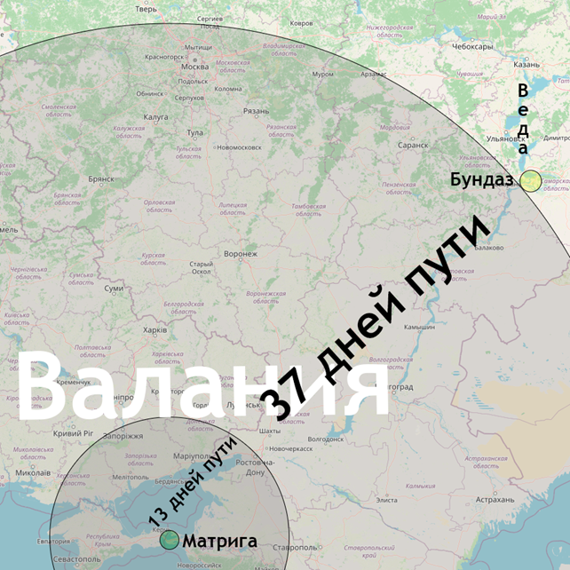 В сочинении монаха-путешественника Юлиана Венгерского (XIII в.) упоминается сарацинский народ веда. Автор рассказывал про свое странствие с караванщиками следующее: сперва они за 13 дней прошли через пустыню из зихийского города Матриги (Тамани) до страны Алании, а затем за 37 дней прошли через степь из Алании до города Бундаза в стране Веды [1, с. 79]. Алания находилась на Юге, а прародина мадьяр – на Севере, так что цель посещения Алании вызывает вопросы. Про страну Аланию он писал, что она населена христианами и язычниками, у которых нет единого правителя, из-за чего все воюют со всеми и находиться там крайне опасно. Это описание едва ли соответствует реальной Алании: скорее всего, автор имел ввиду Валанию (Кыпчакию) – русские называли кыпчаков «половцами» (бледно-желтыми), а немцы калькировали это название («valwe/valbe, fahl/falb» – бледный) и стали именовать кыпчаков экзоэтнонимами Valani, Valoni, Falones и т.д. Мы считаем, что раз задача Юлиана состояла в посещении прародины мадьяр, находящейся на территории современной Башкирии, то наиболее вероятный путь выглядел так: сперва вдоль Азова до Кыпчакии на Нижнем Дону, затем вдоль Дона, а потом вдоль Волги до Веды. Если наше предположение верно, то за названные автором временные промежутки караван мог добраться от Тамани до устья Дона, а далее до Жигулевских гор: именно там следует искать пограничный город страны Веды – Бундаз (см. Рисунок 1). С городом Бундазом могут быть связаны: во-первых, город Ваи (Ван, Ваб), упомянутый ибн-Рустой в стране сакалиба [25, с. 28], во-вторых, город Вабнит (Вантит, Вантис), упомянутый в «Худуд аль-алам» как самый восточный город народа сакалиба, чьи жители напоминают русов (аорсов) [28, с. 158-159], в-третьих, город Вантит (Вантис), упомянутый Гардизи на окраинах страны сакалиба [2, с. 122]. В районе Жигулевских гор находится группа именьковских селищ и городищ, крупнейшим из которых является Лысая Гора.