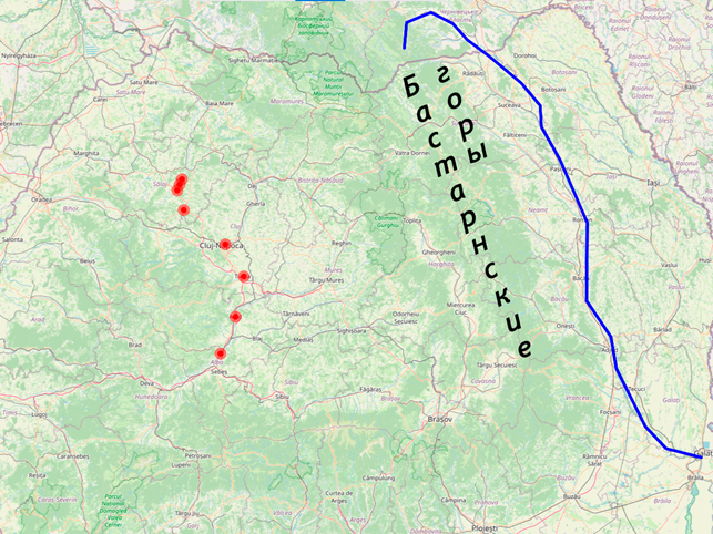 Так как Сирет ограничивает Бастарнские горы с Севера и Востока, а укрепления от Апулы до Поролиссы – с Запада, то эти горы можно отождествить с южной частью Восточных Карпат.