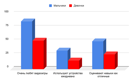 Рисунок 1. Сравнение самоидентификации и цифровой активности мальчиков и девочек в младшем школьном возрасте (Составлено автором на основе источника: [9])