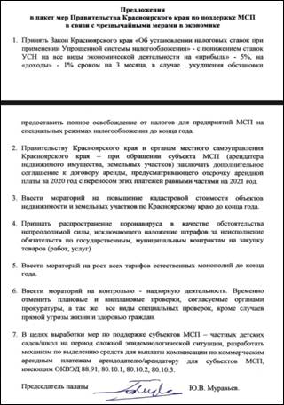 В этом контексте середина второго этапа истории Общественной палаты Красноярского края и Гражданской ассамблеи Красноярского края оказалась временем радикальных перемен в вопросе взаимодействия с некоторой частью краевого населения и органов власти. В начале марта 2020 года на территории Красноярского края начали устанавливаться определенного рода ограничения, направленные на профилактику распространения коронавирусной инфекции. В середине марта палатой организаций в сфере экономического развития, конкурентоспособности и предпринимательства Гражданской ассамблеи Красноярского края был поднят вопрос о необходимости созыва палаты, ввиду поступающих в ее адрес жалоб от представителей НКО о тяжелом положении регионального сектора бизнеса, в связи с введенными в регионе ограничениями. 26 марта состоялось последнее очное в том году заседание палаты, по итогам которого в адрес Правительства Красноярского края был отправлен пакет мер по поддержке малого и среднего предпринимательства. Ключевую часть в нем составляло введение моратория на контрольно-надзорную деятельность: временно отменялись плановые и внеплановые проверки, согласуемые органами прокуратуры, а также все виды специальных проверок, кроме случаев прямой угрозы жизни и здоровью граждан [12]. Правительство взяло в работу резолюцию, в последующем приняв некоторую часть из вышеуказанных мер. Данный факт стал первым шагом, в контексте истории взаимодействия, на пути к отработке прообраза слаженного механизма взаимодействия на постоянной основе между властью и обществом по отношению к долгосрочной общерегиональной угрозе.