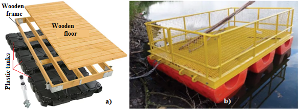People widely use water bodies for various needs. These include necessary or recreational needs such as irrigation of agricultural fields, fishing, hunting, tourism, freight and passenger transportation. Sometimes, depending on the area, there is a need to transport light trucks and cars from one coast to another. In particular, in large lakes and areas with abundant wide-bed rivers, it is necessary for the residents of the surrounding areas to transport their vehicles from one shore to another. Although bridges are built over rivers for these purposes, the distances between the bridges are usually long or there are no bridges at all in certain areas, the bridges in flood-prone regions are occasionally unusable, etc. At this time, due to the time spent on the road to be covered, as well as fuel consumption and the importance of transportation, there is a need for special water transport vehicles for the population living in the settled areas along the river bed to move from one bank to the other. In such cases, craft-made rafts or pontoons are often used. Pontoons are water vehicles consisting of tanks made of waterproof materials, mainly metal, plastic, composite materials, and sometimes concrete, on which a wooden or metal construction platform is assembled (Fig. 1, a) [6, 8].