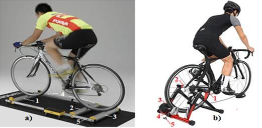 Figure 5. Cylindrical roller devices for cycling: a) controlled by the handlebars; b) with a fixed support
