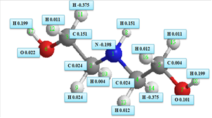 Молекулярное моделирование и расчет значения зарядов начальных соединений выполнены с помощью программных обеспечений: «Chem Office (2022)» методом Extended Huckel; «Hyper Chem» методами AM1 и PM3 и «Gausssion 09W» методами Graund state, DFT, Undestricted, B3LYP