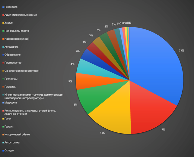 Рисунок 1. Диаграмма анализа современного использования береговой полосы реки Иртыш, протяженностью 15 км, от Северного причала до Южного порта