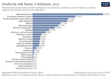 Рисунок 2. Смертность по факторам риска, Узбекистан, 2021 год [11]