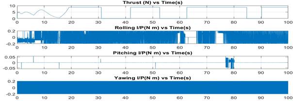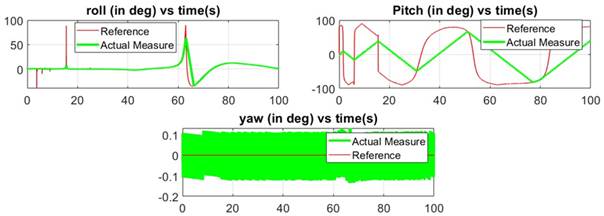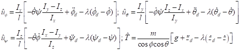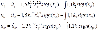 To control the Quadrotor in the desired trajectory, the sliding variables must reach the sliding surface in a finite time and slide on the surface to approach the zero point. The input equations to control the state of the Quadrotor are calculated as follows: