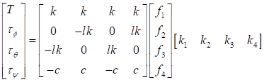 Quadrotor parameters used in the simulation process [ 4-8 ]: Yaw moment: