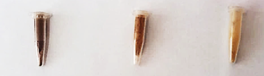 After the synthesis process is complete, the compound is purified twice using methanol and then dried. The obtained product appears brown in color. Figure 1 below shows three different samples of ellagic acid, illustrating the differences between unpurified and purified ellagic acid.between unpurified and acid.