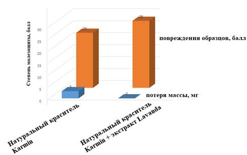 Рисунок 3. Показатели молезащитных свойств окрашенных образцов
