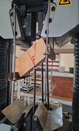 Испытание на выдергивание шурупов из древесины под углом 45о к осям древесины. Для испытания древесины на прочность при растяжении образцы изготавливали в 3 сериях по 3 штуки в соответствии с стандартом ГОСТ Р 58959-2020.