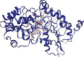 Results and discussion. The molecular docking method allows studying ligands that bind to microbial proteins. Taking this into account, the antibacterial activity of ketoprofen and its complexes against Streptococcus pyogenes serotype bacteria was analyzed. In order to compare the [Cu(Ket)2(MEA)2]-containing complex and the ketoprofen ligand, binding to the receptor protein (ID: 186103) of Streptococcus pyogenes serotype bacteria, which causes inflammatory diseases in the human body, was performed on the CB-DOCK server (China). The receptor of Streptococcus pyogenes serotype M18 (strain MGAS8232), which has the simplest structure, responds to the proliferation of the bacterium Streptococcus pyogenes serotype, and was studied by separately exposing ligands and complexes to this protein molecule (Fig. 1). Protein-ligand interaction energies are presented in Table 1 and Figure 2.