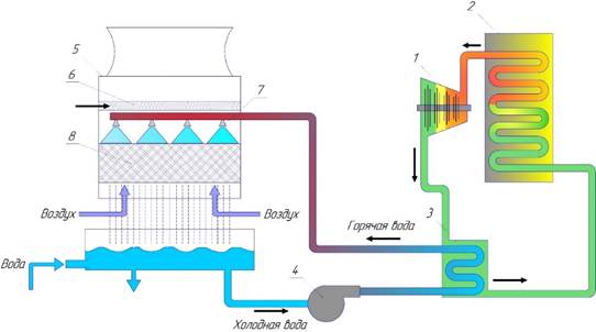 Рисунок 2. Схема системы охлаждения с использованием градирни