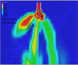 В программе SolidWorks Flow Simulation мы разработали метод расчета водораспылителя форсунки с разными характеристиками. Предложенная нами водораспылительная форсунка смогла снизить температуру воды с +39 0С, упомянутую в источниках, до +33,5 0С, т.е. до 14%, и добиться эффективного охлаждения.