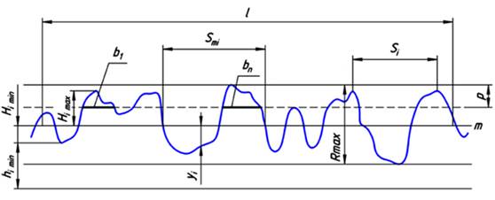 - the average step of profile irregularities by peaks, where N is the number of profile Maxima.