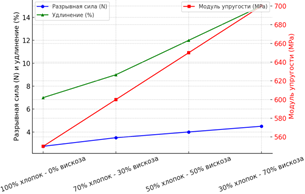 Сравнение механических свойств хлопково-вискозных смесей с различным соотношением компонентов[15;16]