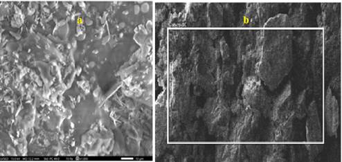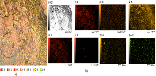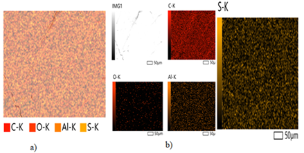 С помощью этих анализов определяется элементный состав и структура поверхности битума. В то время как общий SEM-анализ (a) показывает более широкое распределение элементов, отдельный SEM-анализ (B) показывает анализ четко расположенных элементов. Эти результаты помогают глубже изучить связи между свойствами поверхности материала, пористостью и содержащимися в нем элементами. Части поверхности SEM и элемент из результатов анализа видно, что битумы марки ПФГ-РM имеют более высокую степень пористости по сравнению с немодифицированным битумом, то есть исходные вещества полностью слиты друг с другом, вещества не содержат добавок, а элементы сшиты.