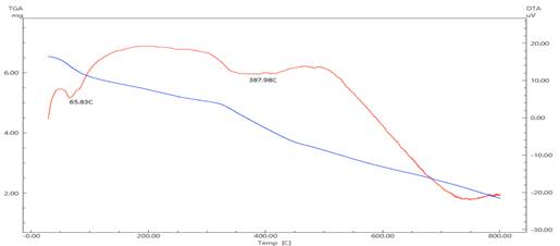 Термический анализ – термическую стабильность синтезированных модифицированных веществ анализировали с использованием дифференциально-термических и термогравиметрических методов на приборе японской фирмы SHIMADZU. Методы анализа SHIMADZU (синхронный термический анализ) ТГ и ТГ-ДТА, ТГ-ДСК представляют собой простую в использовании, надежную и высокоэффективную платформу термического анализа. Исследование проводилось на дериватографе со скоростью 10 град/мин, с чувствительностью гальванометров Т-900, ТГ-200, ДТА-1/10, ДТГ-1/10 и с автоматической регистрацией дериватограммы на компьютере. Образец исследуемых образцов массой 15–16 мг помещали в тигель диаметром 10 мм из оксида алюминия и платины, устойчивый к температуре 1650°С, без крышки.