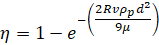 η — искомая эффективность, R — радиус циклона, v — скорость воздушного потока,