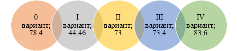 сек, т.е. на 88% (рис.1). Самый высокий показатель воздухопроницаемости составляет у IV варианта, самый низкий показатель воздухопроницаемости составляет у I варианта. Разница в показателях воздухопроницаемости достигается за счет изменения вида пряжи в трикотаже.